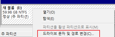 드라이브 문자 E는 제거를 하고 위에 사진처럼 추가를 해준다.